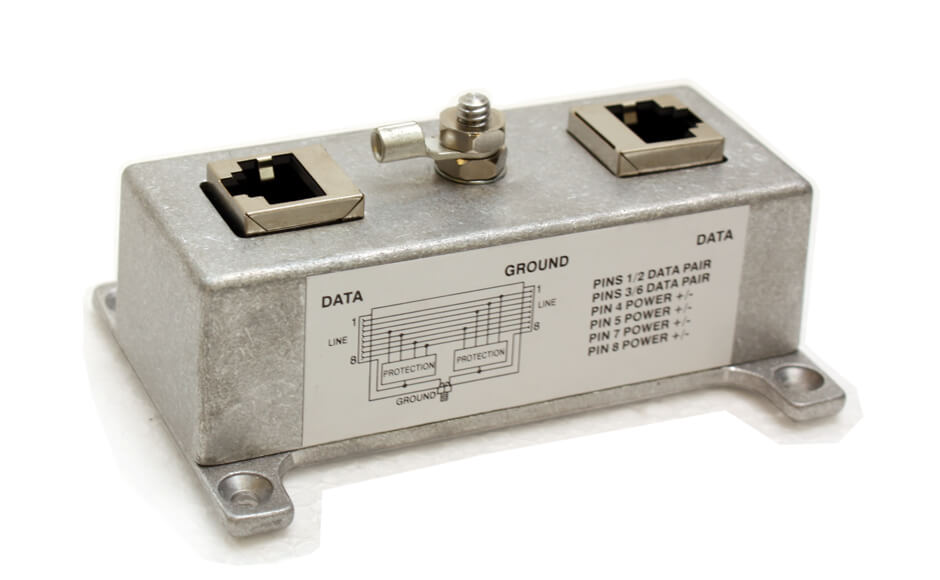 Lightning arrestor for RJ45 terminated cables.
